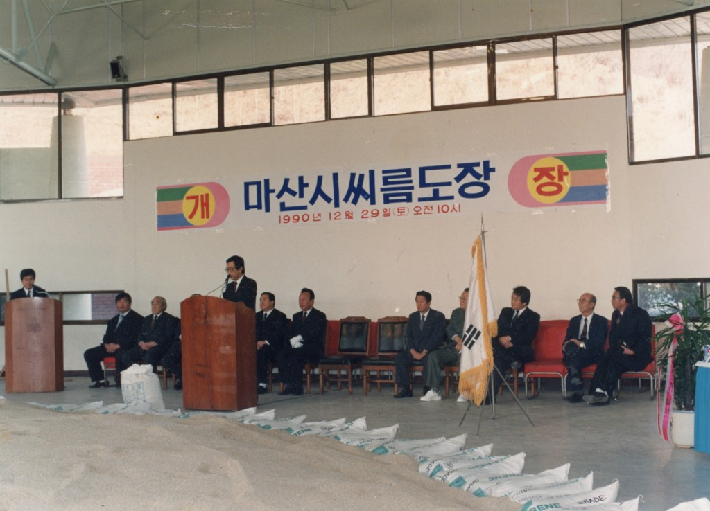 Kim Seong-ryul’s efforts in fostering ssireum talent are underscored by the establishment of dedicated ssireum gyms and the founding of the Masan Ssireum Team. Emphasizing the need for dedicated sports facilities to broaden the reach of ssireum, Kim Seong-ryul, with the support of local authorities and residents, saw the inauguration of the Masan Ssireum Gym in December 1990 at the entrance of the former Masan City Gyobang-dong Seowongok Park. This facility served not only wrestlers but also provided ssireum education for the general public. Following his retirement, Kim Seong-ryul took on the role of the inaugural director of the Masan Ssireum Gym, dedicating his energy and passion to the spread of ssireum and the development of future talents. Additionally, during his tenure as a professor, Kim Seong-ryul lamented the absence of amateur ssireum clubs in his hometown of Masan. Consequently, he actively pursued the establishment of such clubs to ensure the continuity of Masan’s ssireum legacy. As a result of his proactive efforts, the Masan Ssireum Team was founded in 2000, further demonstrating Kim Seong-ryul’s commitment to fostering ssireum talent and expanding its influence in the Masan region.