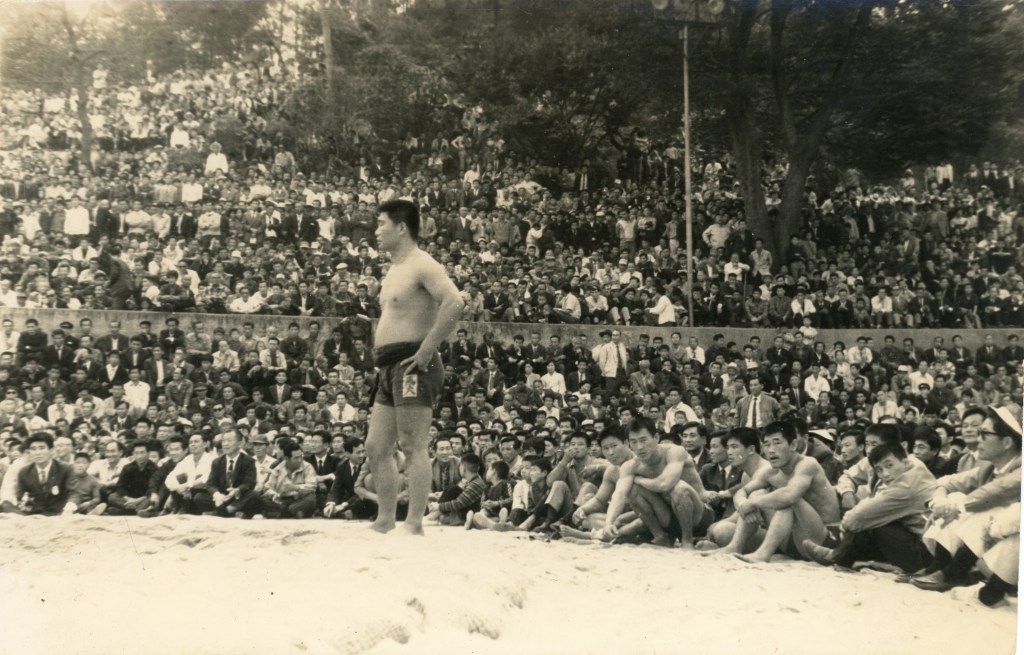 The 1962 inaugural National Grand Champion Ssireum Tournament, held in commemoration of the unveiling of the March 15th Memorial Tower, marked the beginning of Kim Seong-ryul’s ssireum career. The result was an unexpected victory. Kim had never formally trained in ssireum, and his school, Masan Middle School, did not even have a ssireum team. So, Kim Seong-ryul was listed as a member of Jungang Middle School because he had to compete under their ssireum team due to the lack of a ssireum department at his own school. His victory at this national tournament became the decisive factor that led him to formally enter the world of ssireum.